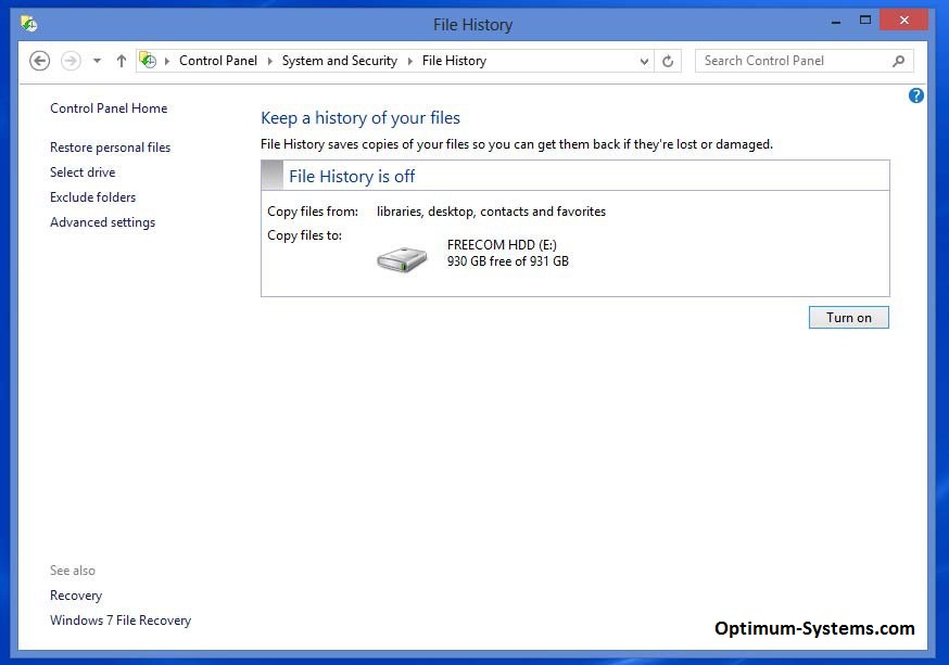 This feature of Windows is easy to use once you configure it properly. Follow the steps given below to configure Windows 8 File History.